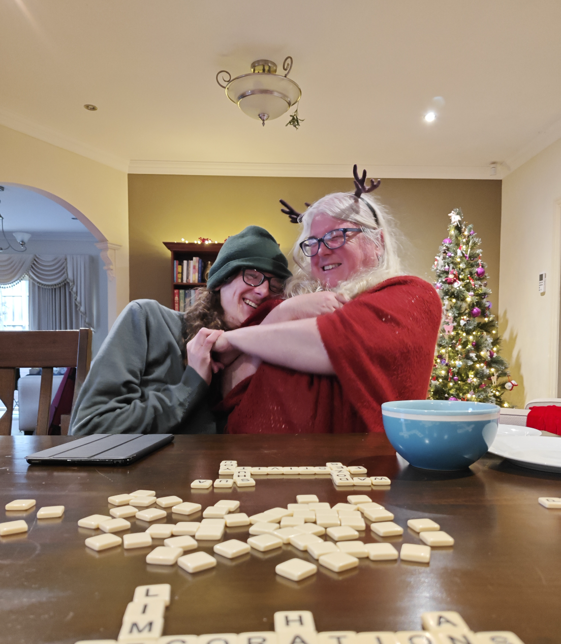 We played Bananagrams as intended — but with a completely random Christmas-adjacent word shouted whenever it was time to pick up a tile. What followed was a lot of giggling, a fair bit of silliness, and absolutely no record of what the word actually was.