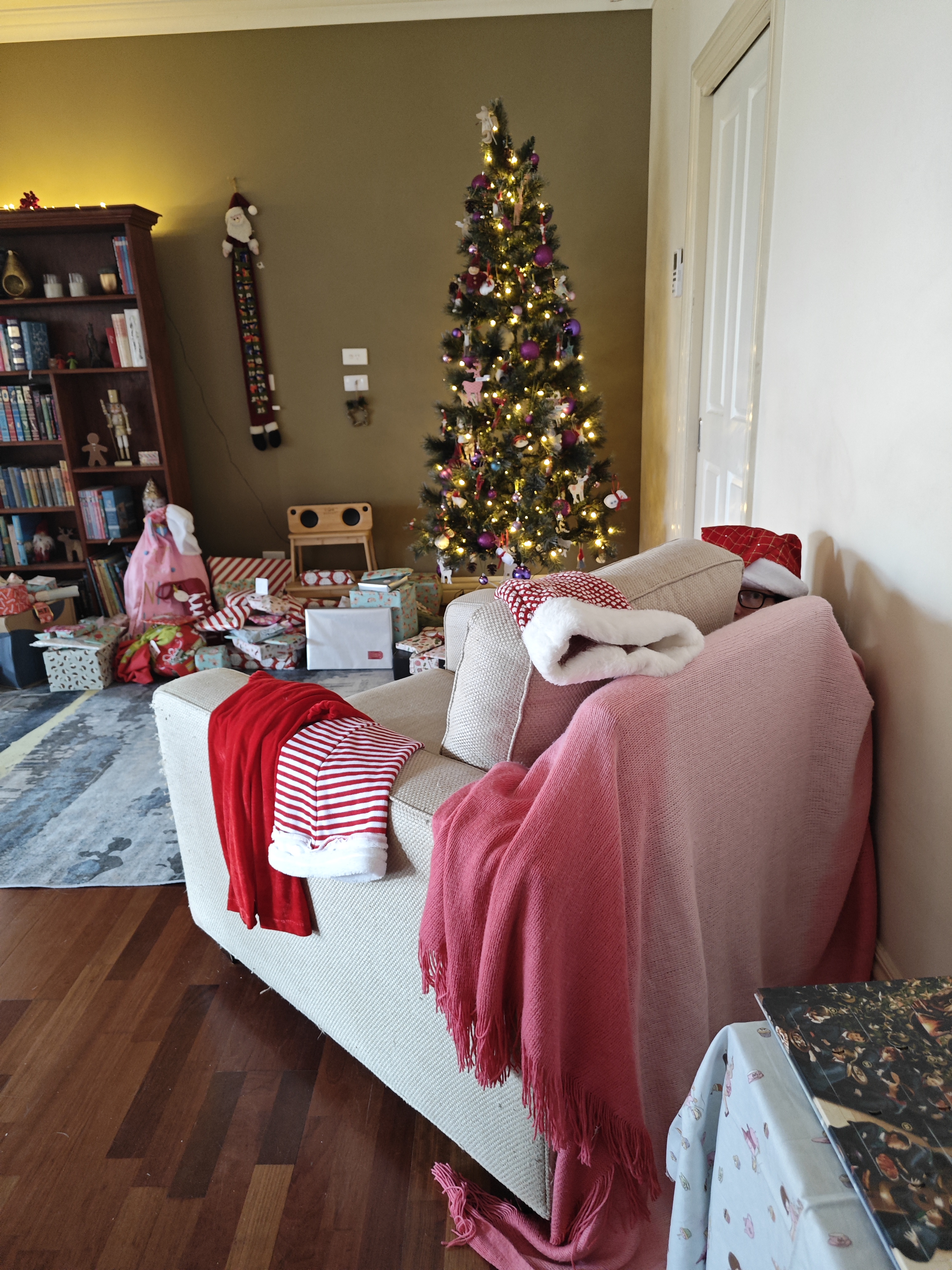 It turns out the tallest member of our household has gone full festive ninja, blending into decorations, baskets, corners, and anything even vaguely shaped like a hiding place.